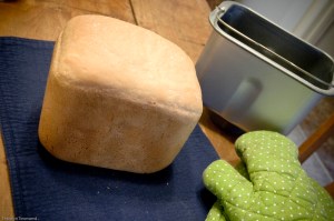 Now, when it finally beeps to let you know it’s ready, don’t go leaping to open that thing up with your bare hands. Take it from me – it is stinkin’ hot! Pleeeaaase use mitts. You need to take it in both mittened hands and shake it out of the bin. Even that little handle is hot – somehow my lip and that thing made contact and it was PAIN- FUL.