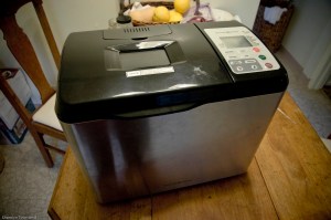 Well…when I enthusiastically came home from the thrift store with a “barely used” Williams-Sonoma bread maker, sans operation manual, cradled in my arms the eyebrow reached their greatest heights yet.