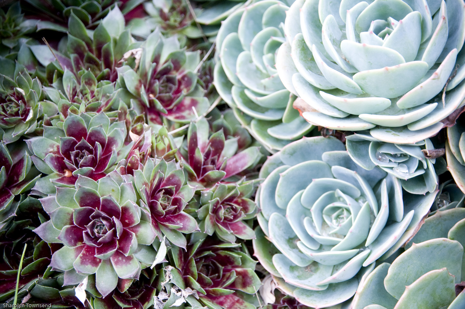 Succulents are beautiful, they propagate themselves, they require little water, love the heat and sun ( some even thrive in cold), and when they are under pressure (root bound, dehydrated etc.) they develop beautiful colors (nurseries deliberately stress their succulents so they look more appealing). And should you want to start a new plant in a pretty pot, simply snip off one of the heads and push it into the soil of your new pot. Done. It will develop roots over the next week or so.