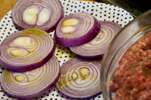 For our inaugural BBQ we grilled burgers. Not to be forgotten, sweet red onions drizzled with olive oil and sprinkled with kosher salt.