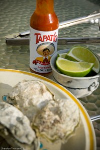 Once the oysters come off the grill, all you need are lime wedges and Tapatio sauce and you are good to go. Be sure, as you crack it open with a sturdy knife, to not spill the delicious juices – you’ll not only burn the crap out of your hands but you’ll also miss out on the added tastiness of the brine.