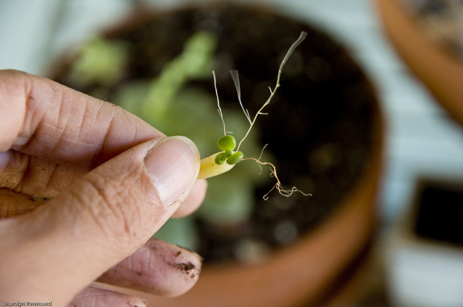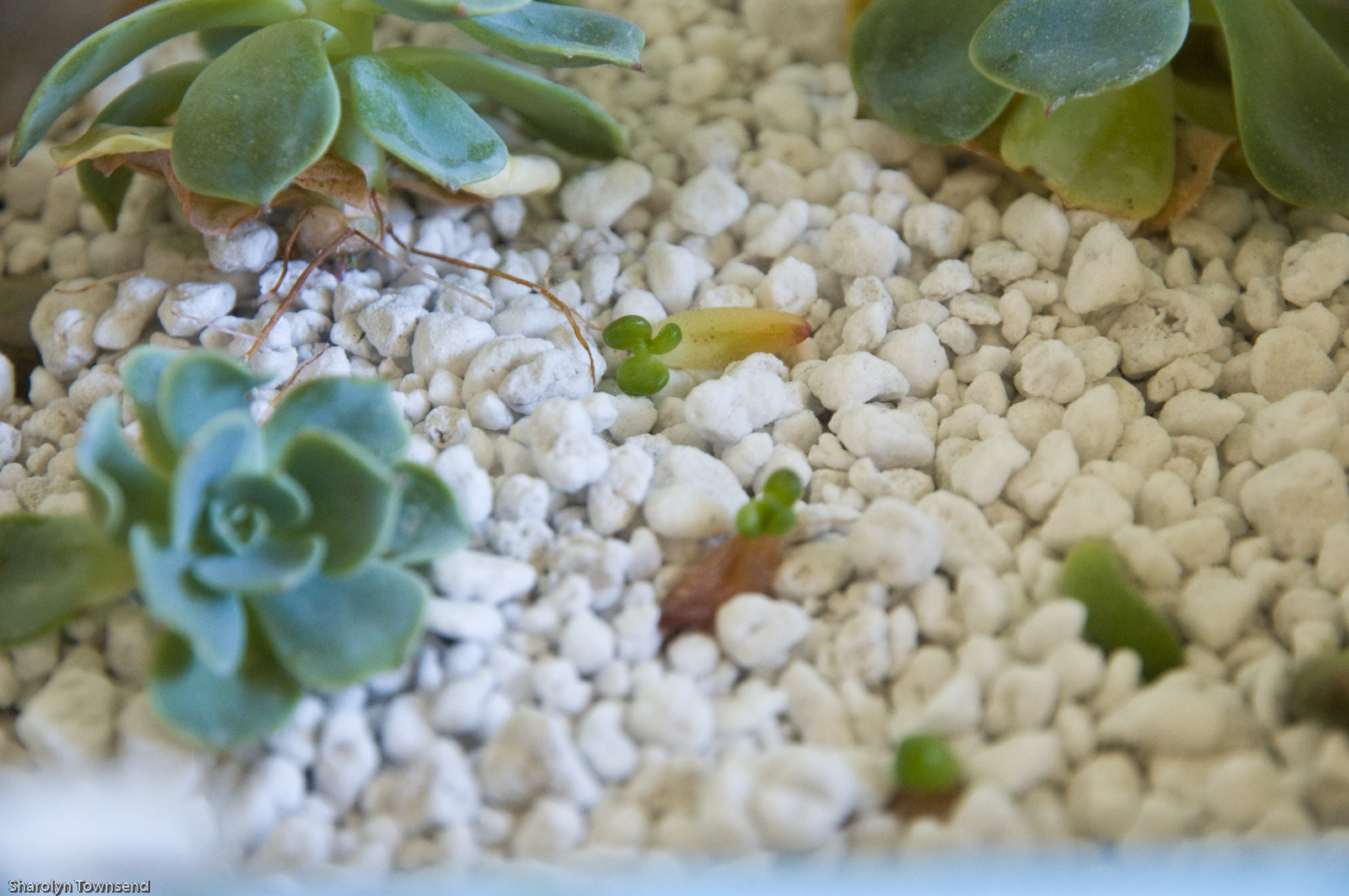 So, way back when, I started a little propagation experiment with some cast off succulent leaves I found at the local nursery.