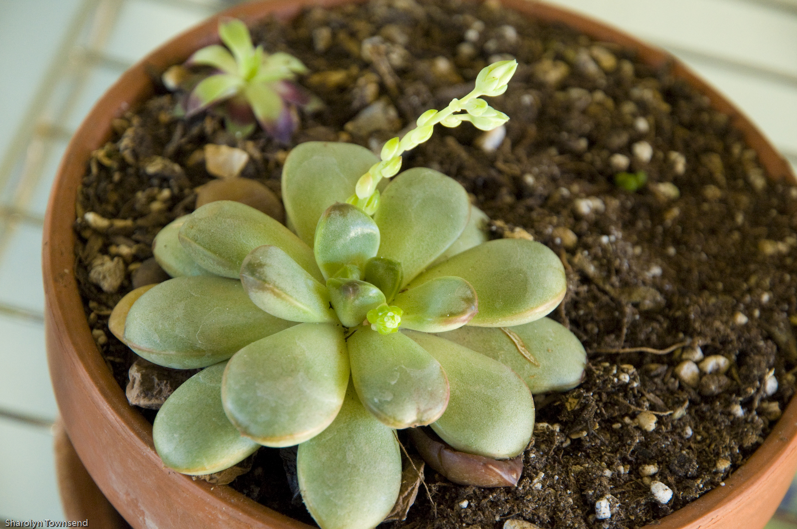 On a happy note, even though it’s neighbor died a horrible and inexplicable death, this succulent is thriving and starting to form a flower!