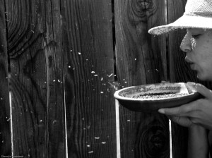 My sister had taught me a nifty trick with morning-glory seeds: to separate seeds from the husks, simply blow. Seeds are heavier and will remain in the dish. So I figured, maybe it’s the same deal with these seeds. Thankfully, I was right and didn’t end up with an empty dish.