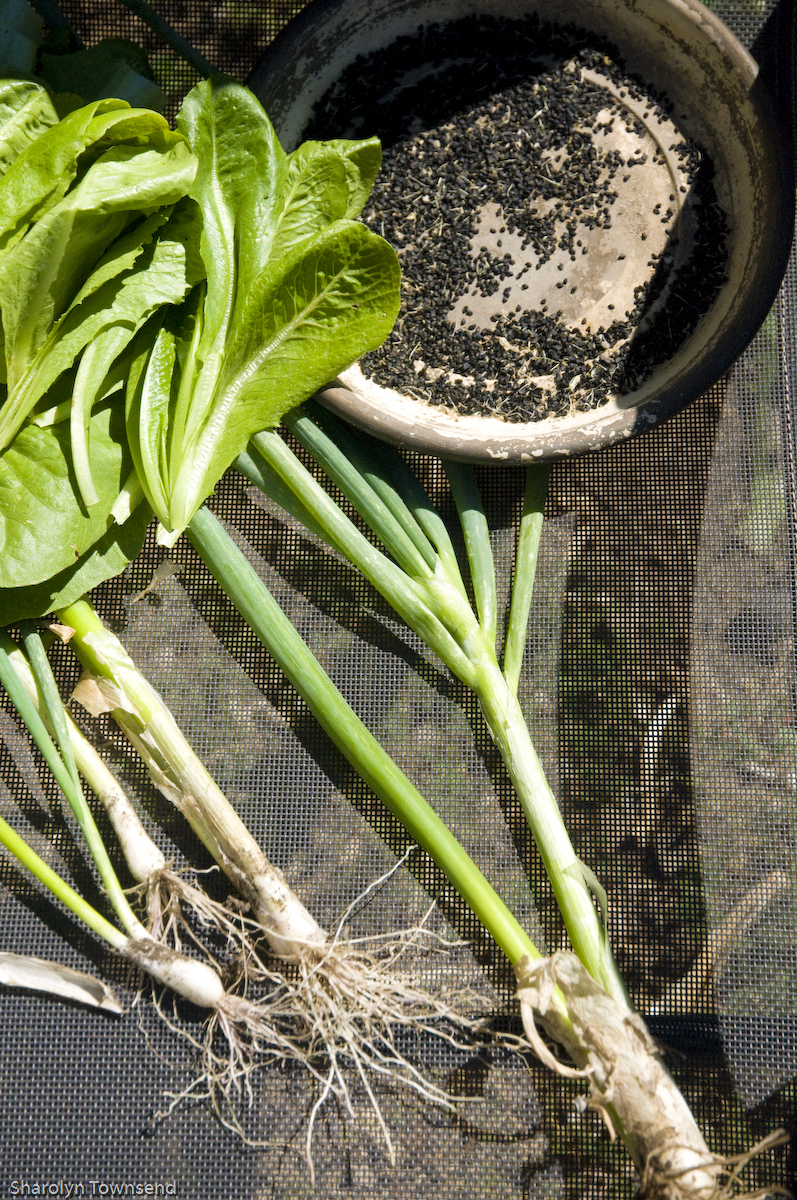 Our spring onions have been way over grown since fall. We decided to keep them in to see what would happen. After all, isn’t this just one grand experiment?
