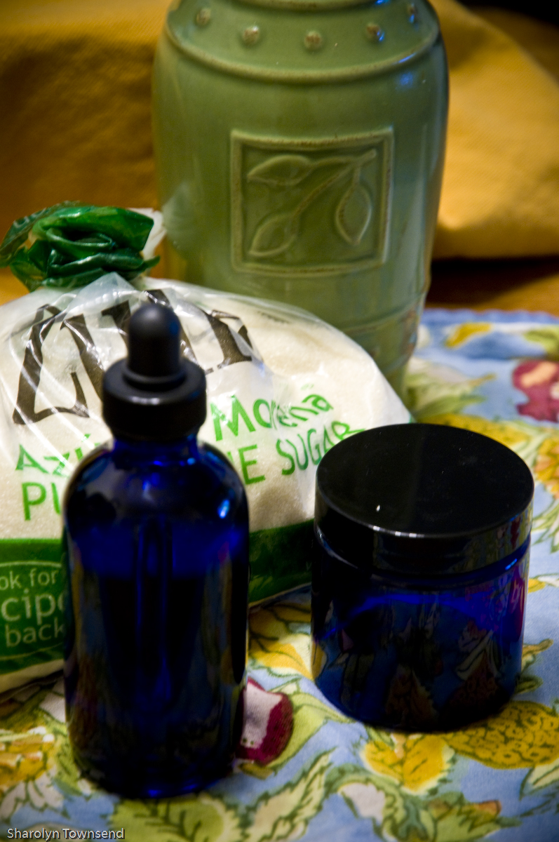 My jar was a small face-cream-sized jar, so I used a 1/4 cup sugar and filled the rest with olive oil and mixed it. You can use another oil like almond or grape for example, but a thick oil is nice for something as gnarly, dry and cracked as your feet very moisturizing for your deserving tootsies.