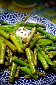 Pan fried asparagus with butter and lavender salt.