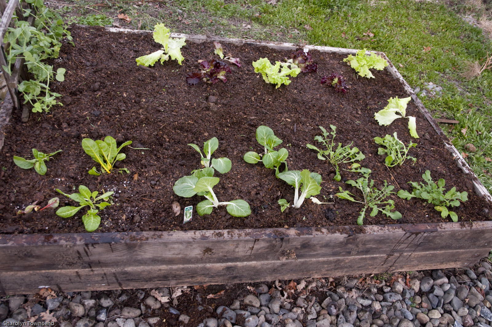 It had to be done. We have a massive back yard. So big that we are completely overwhelmed and don’t know where to start with the landscaping. Especially landscaping on a budget. So, we thought, the one thing that was doable was re-assembling the planter box we’d taken from our previous garden at our old rental. Hubby had gotten two loads of composted rhino dung from work (he’s a guide at a place called Safari West here in Nor Cal) so we tossed that in and then went to our local garden center to pick up some regular soil to mix in and did a little cheating by buying our veggies already sprouted. Insta -garden!