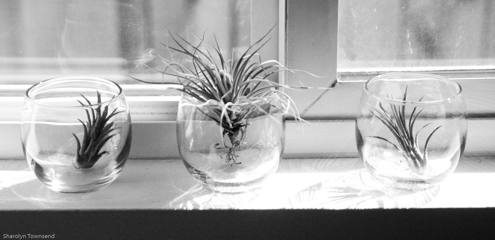 My interest was piqued when I saw a beautifully tendrilled green plant, sans earth, sitting on the counter top by the cash register at my local nursery. I asked a few questions about it but didn’t buy it. Then I saw it in a few more shops, sometimes just as decor enhancements. Suddenly I was hooked on the idea of getting a few. When my sister visited me a few months ago we stumbled on a shop that had a few for sale and I picked some up.